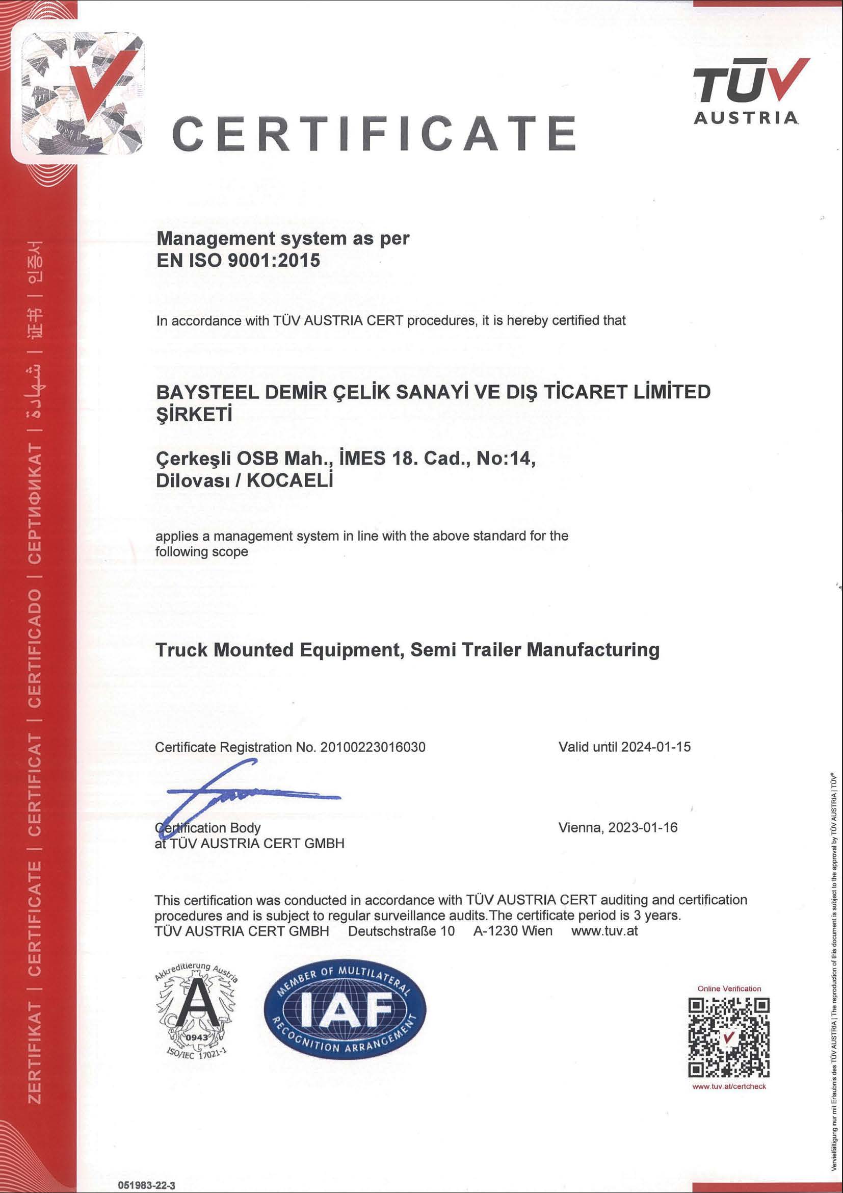 Sertifikalarımız